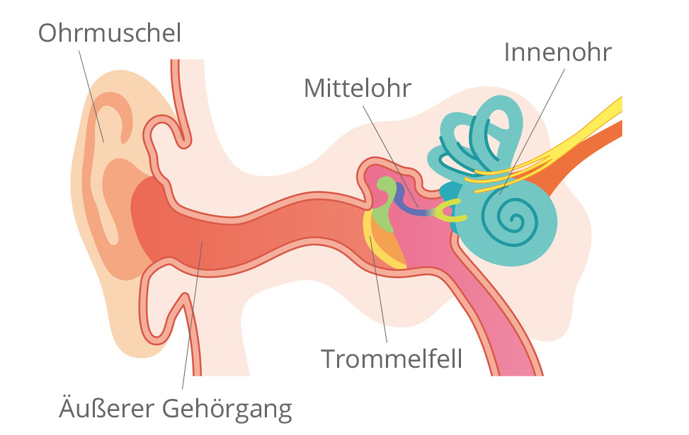 Es hat die Aufgabe Schallwellen aufzufangen und zu bündeln. Gleichzeitig sorgt es aber auch für eine gewisse Richtwirkung nach vorne und es ist so geformt, dass Windgeräusche gebrochen werden. Dahinter liegt der Gehörgang, der auch noch zum Bereich des äußeren Ohres gehört. Er schützt das Mittelohr und hat eine selbstreinigende Funktion. Zusammen mit dem Cerumen werden Fremdkörper automatisch aus dem Ohr befördert.